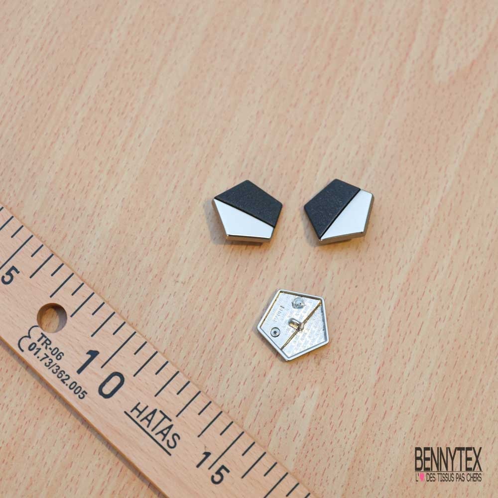 10 boutons à queue hexagone métal argent acrylique noir mat