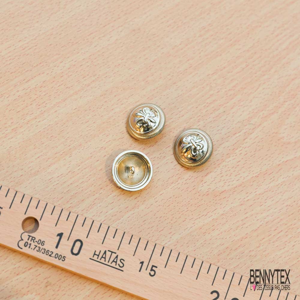 10 boutons à queue fleur de lys métal or demi boule