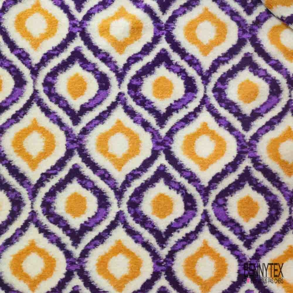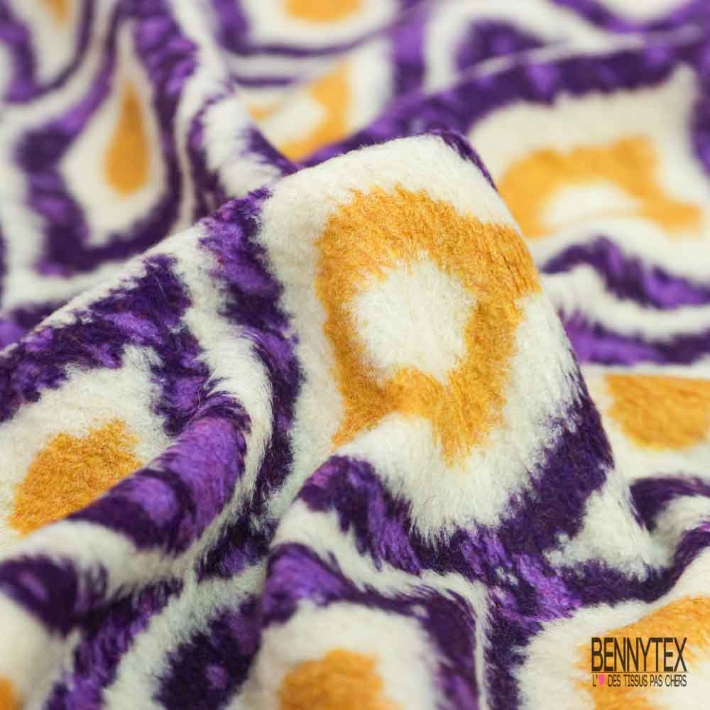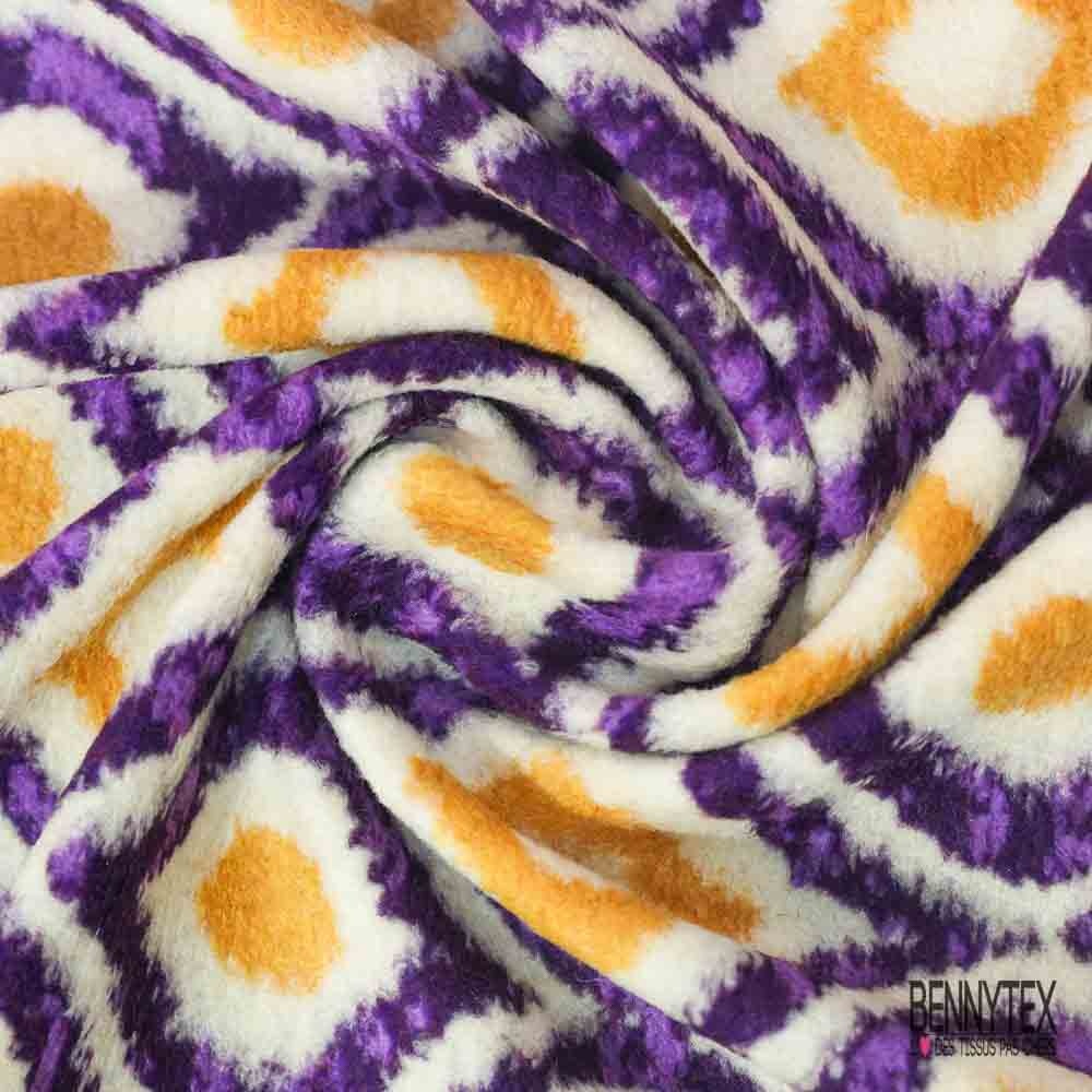 Tricot polaire motif seventie's violet jaune d'or blanc cassé