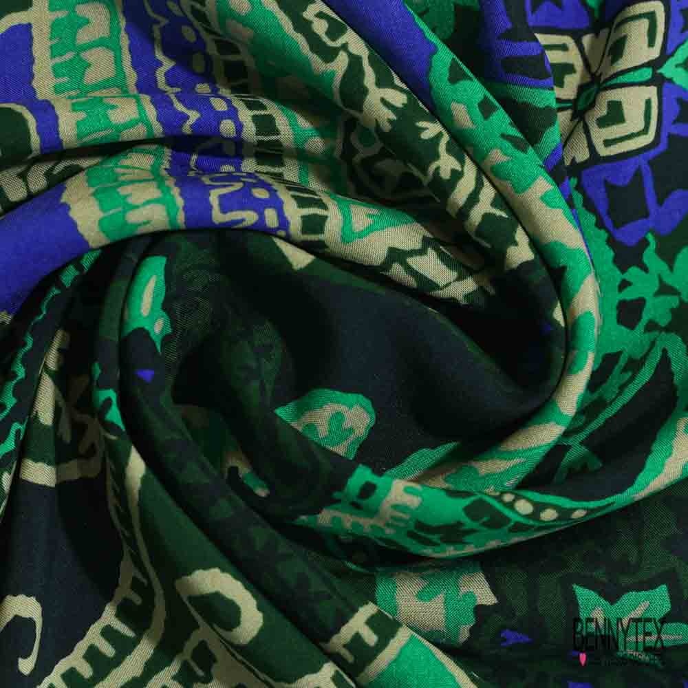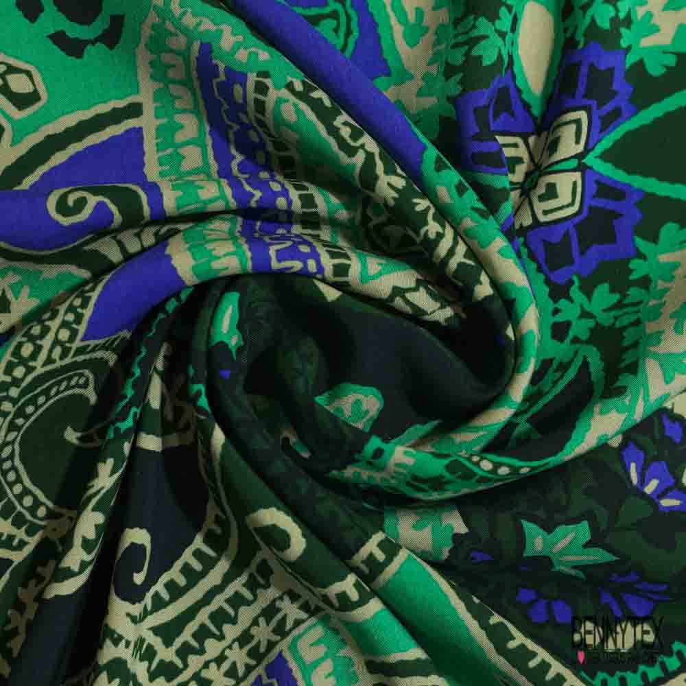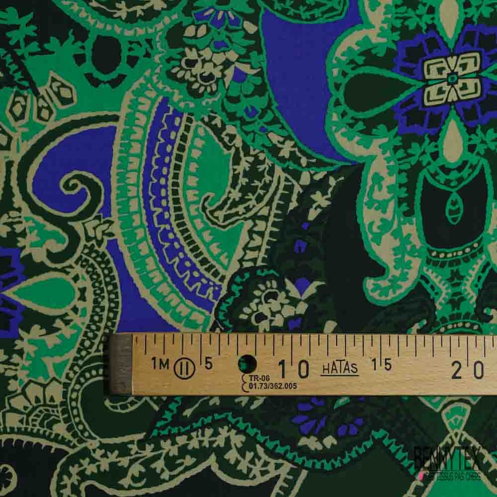 Fibranne viscose imprimé digital cachemire vintage bleu roi gazon noir kaki