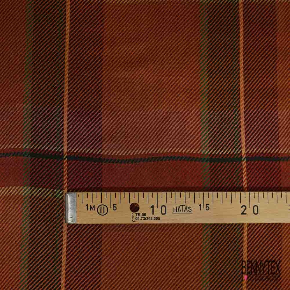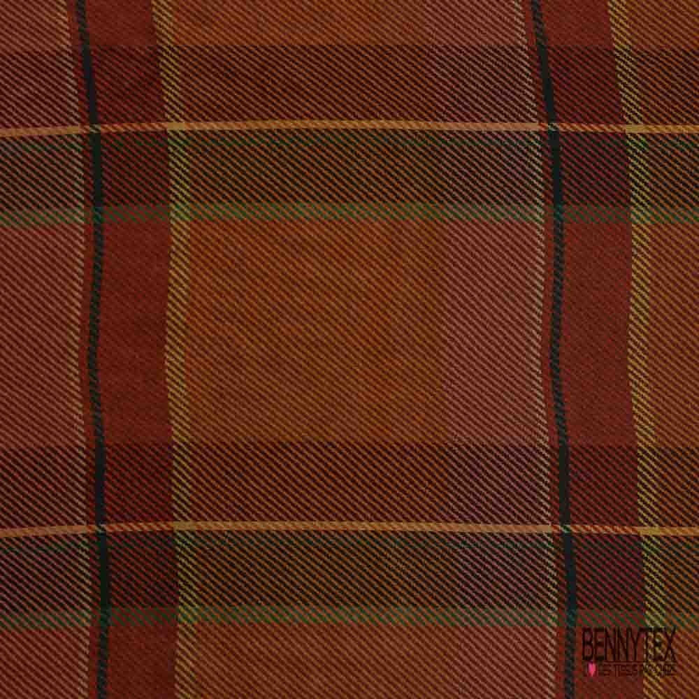 Description Motif: imprimé digital écossais ton orange brûlé roux moutarde brun