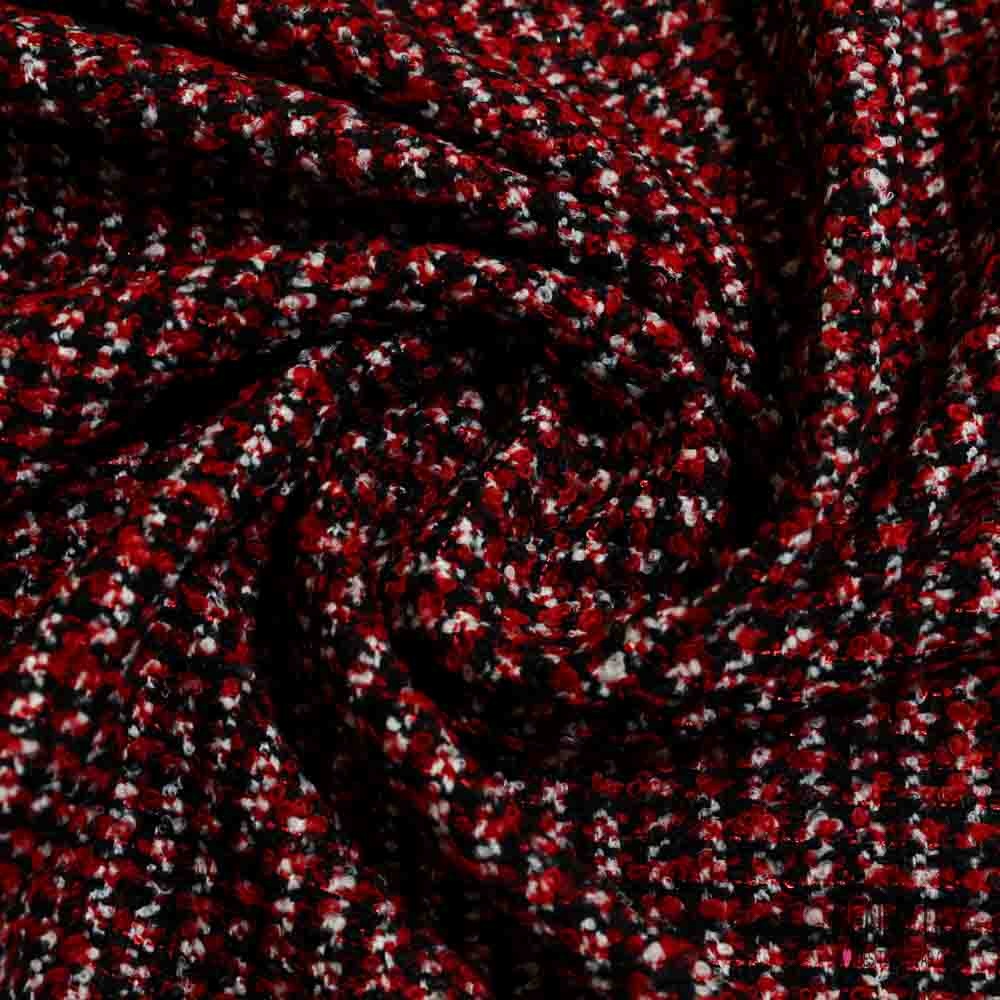 Natté de laine bouclette noir blanc rouge sequin rouge