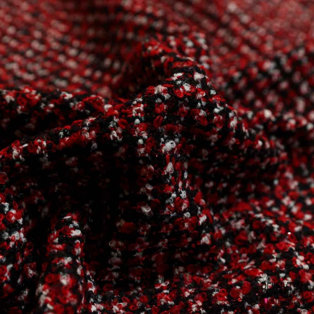 Laissez-vous séduire par notre Natté de laine bouclette noir blanc rouge sequin rouge