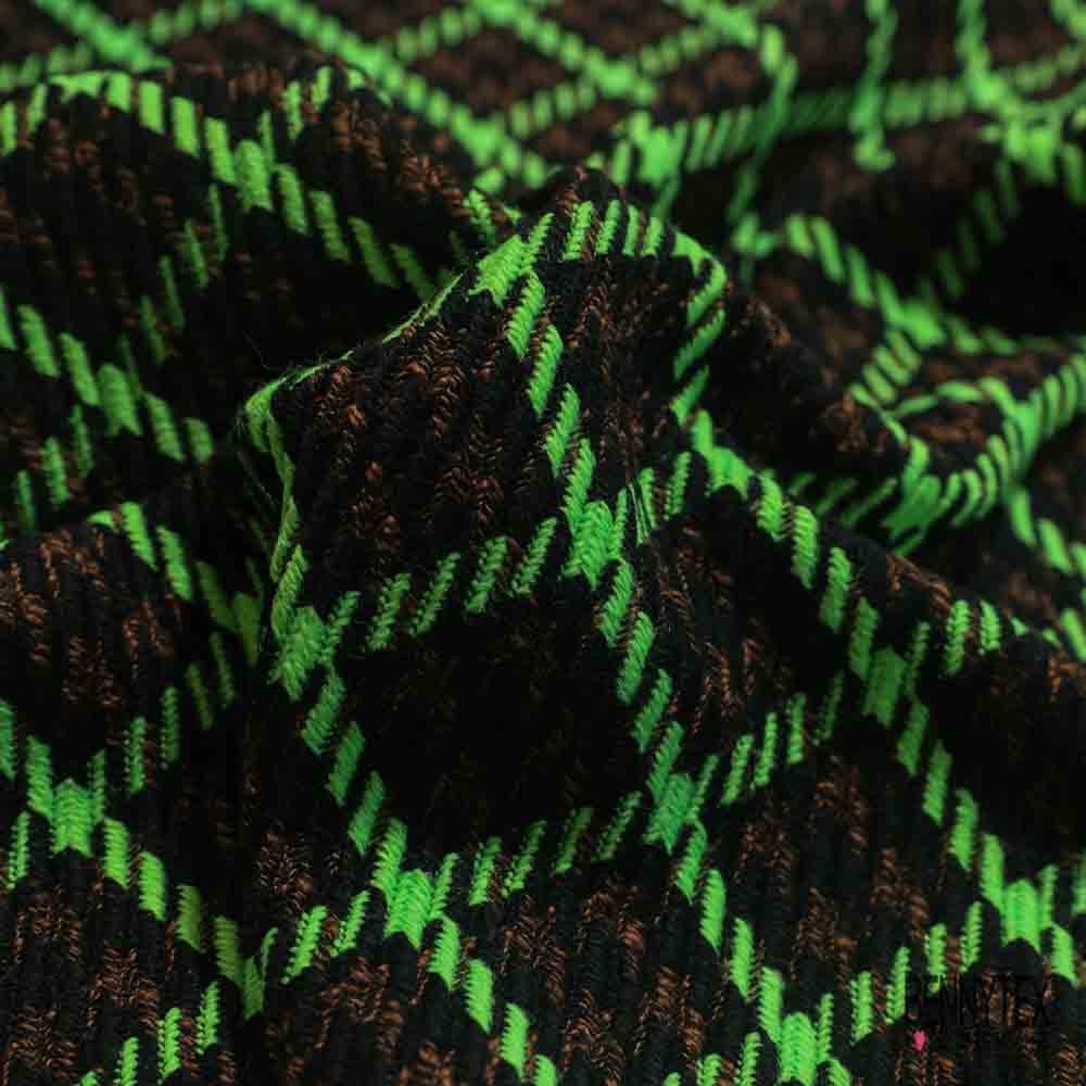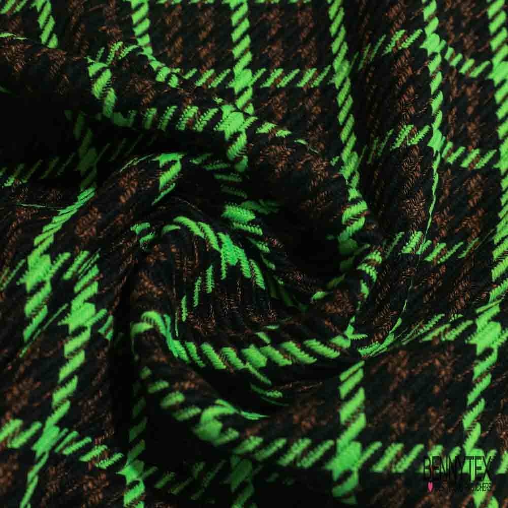 Laissez-vous séduire par notre Natté de laine fantaisie noir vert fluo brun chiné