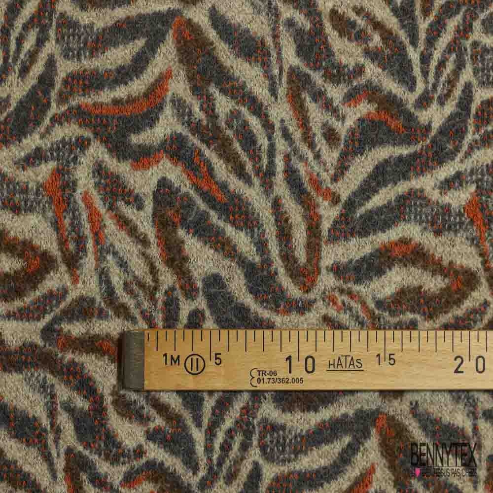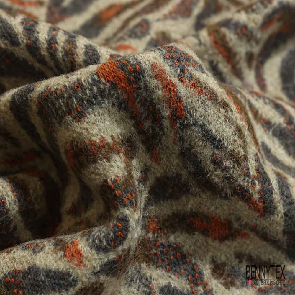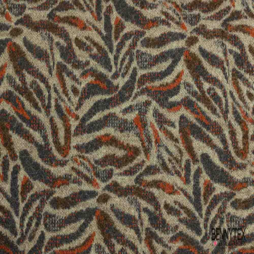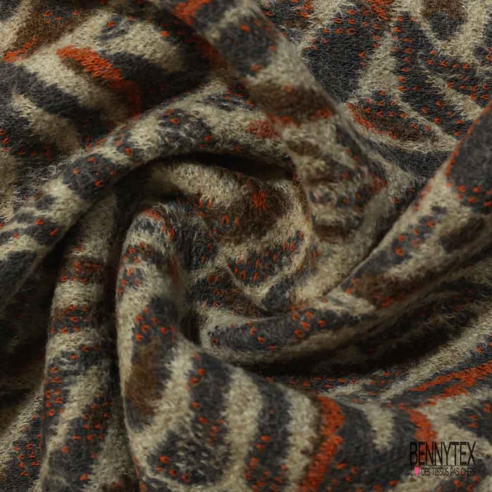 Laissez-vous séduire par notre Tricot de laine bouillie imprimé zébrure orange grise marron fond beige paste