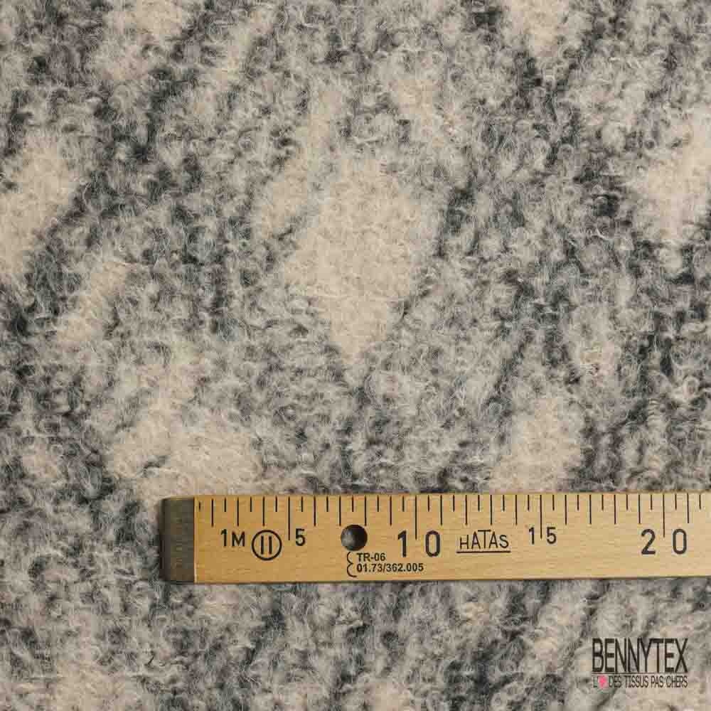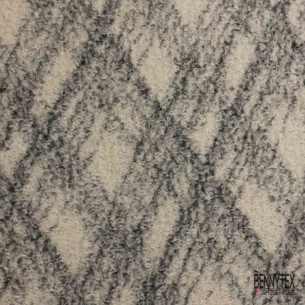 Laissez-vous séduire par notre Mohair de laine vierge motif losange noir fond rosée du matin