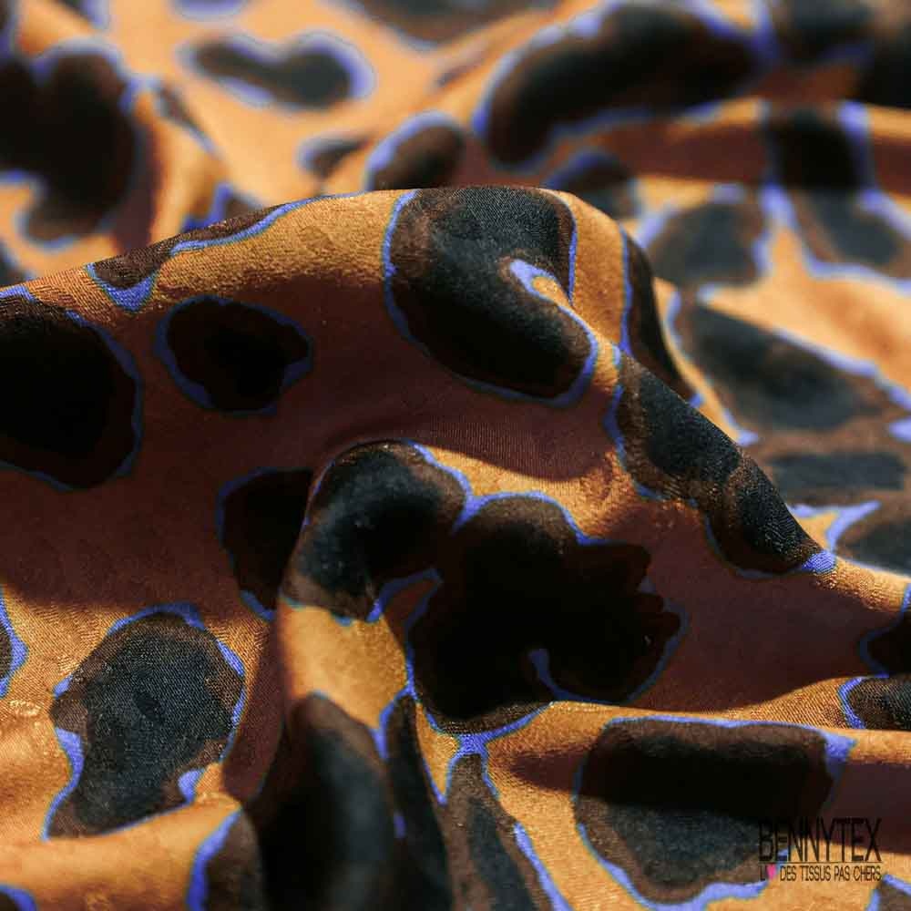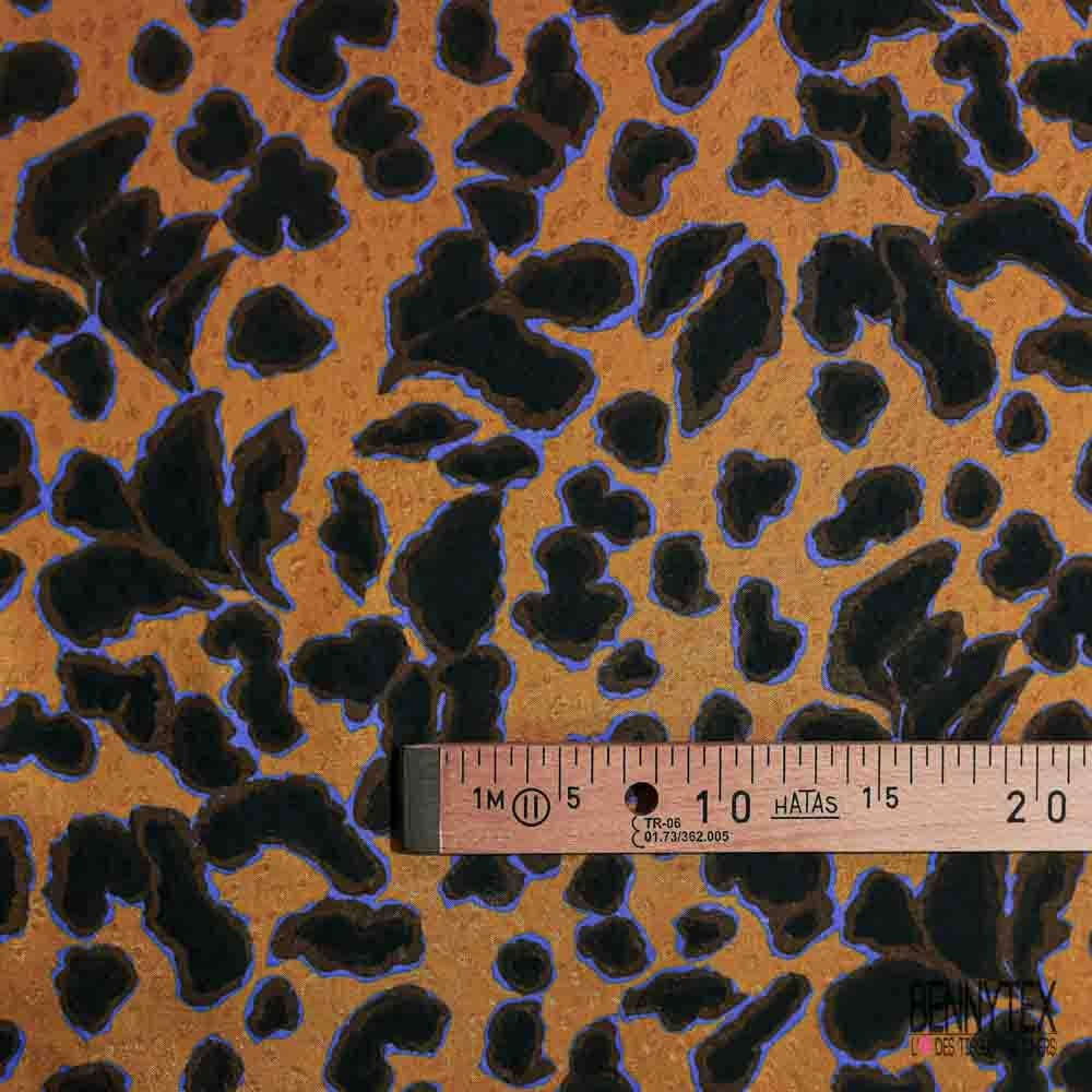 Jacquard viscose imprimé digital abstrait marron lavande noir fond camel