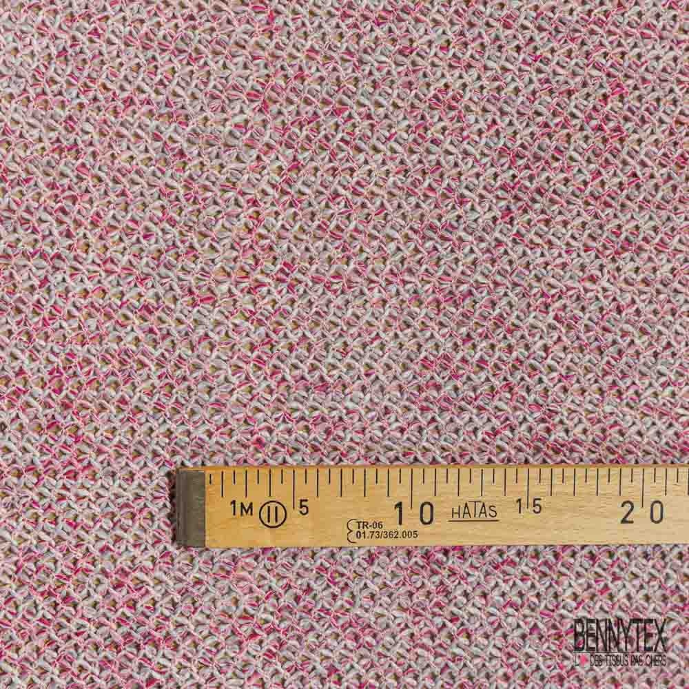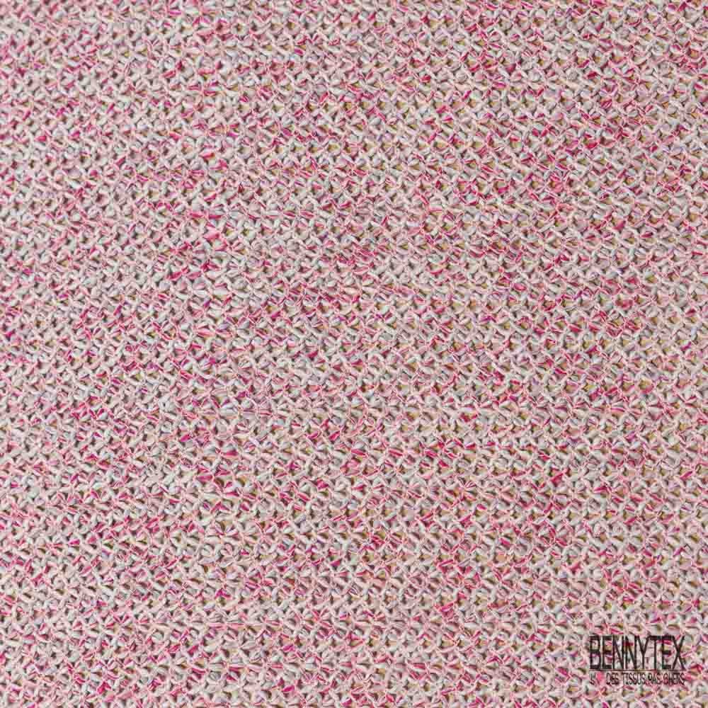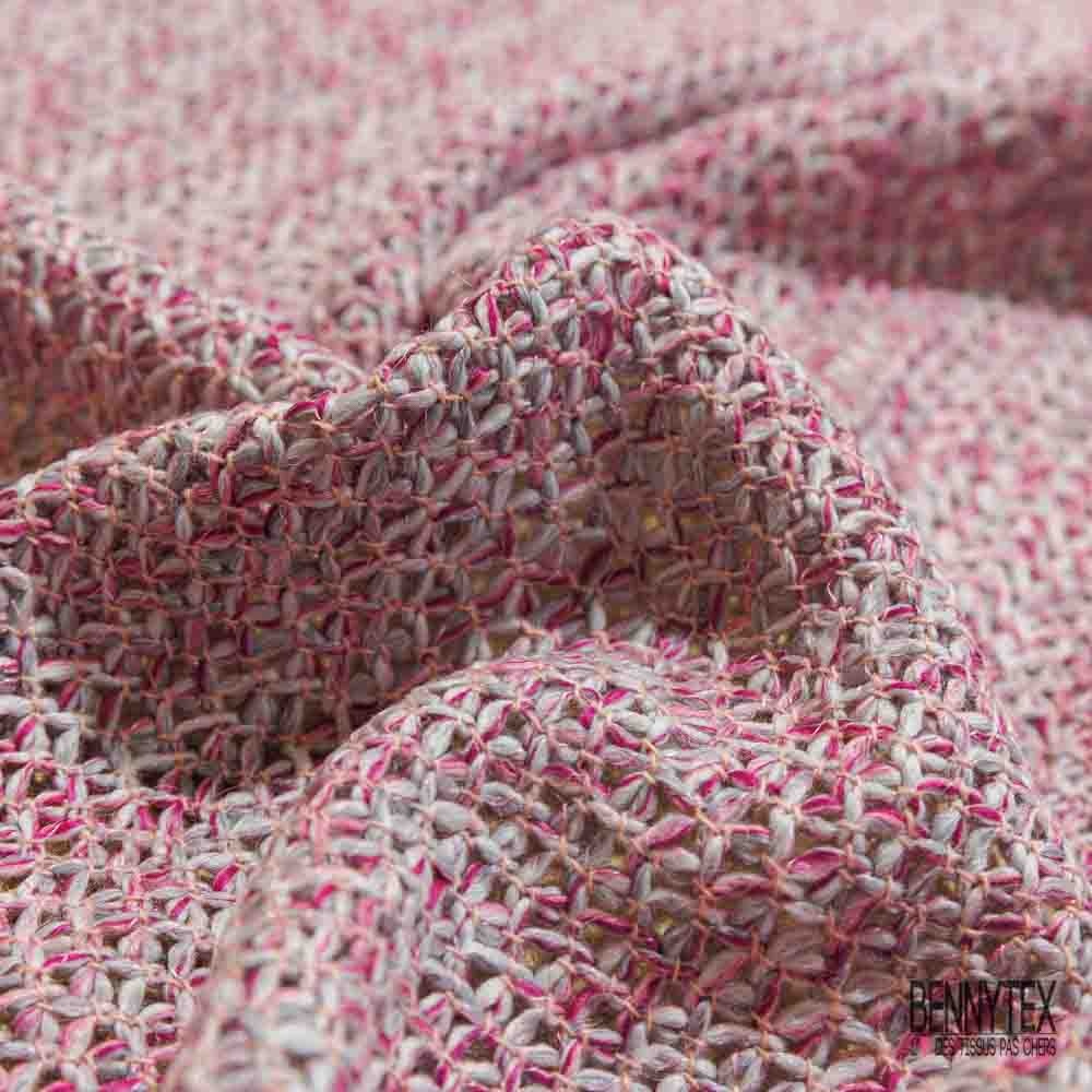 Jersey tricot lache coton laine chiné framboise blanc optique