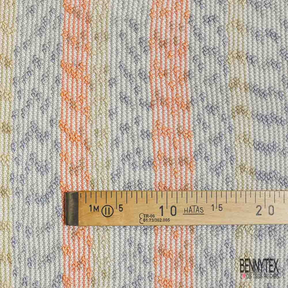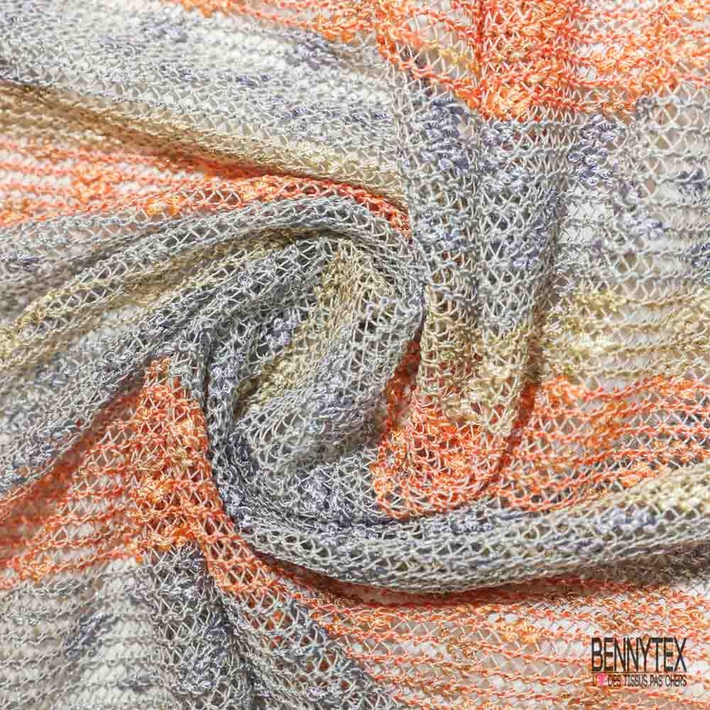 Jersey tricot lache rayon coton chiné rayure horizontale ciel beige corail lurex or argent