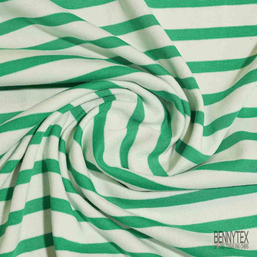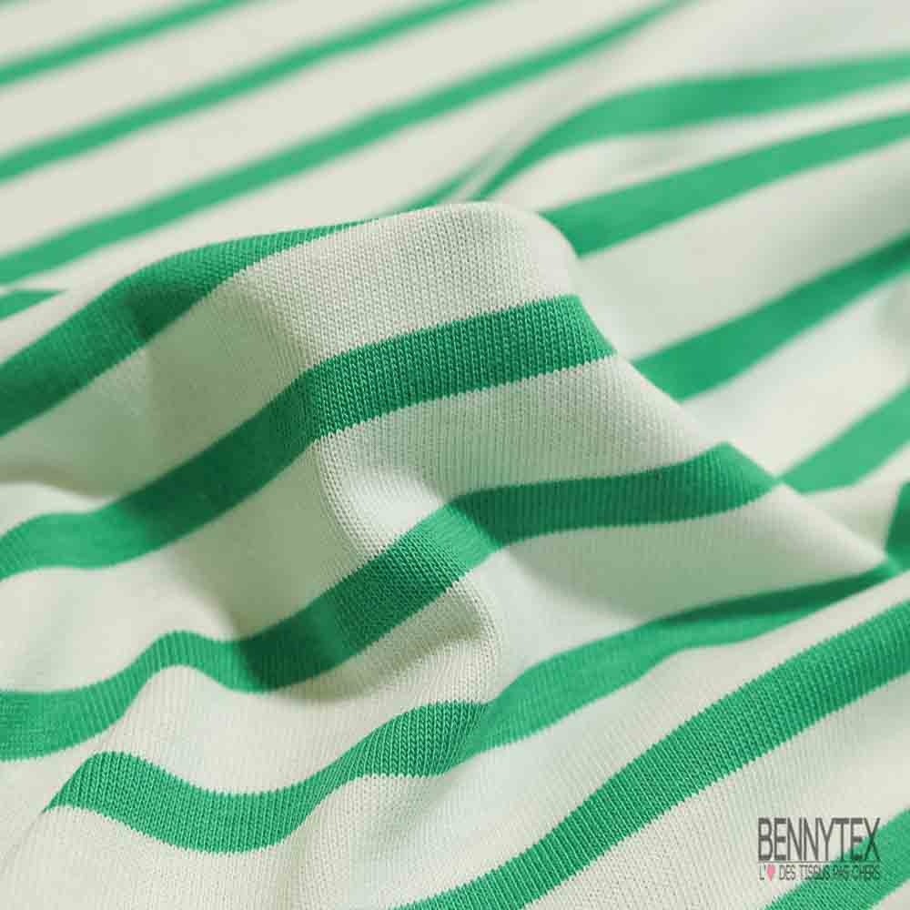 Jersey coton épais marinière gazon blanc optique grande laize