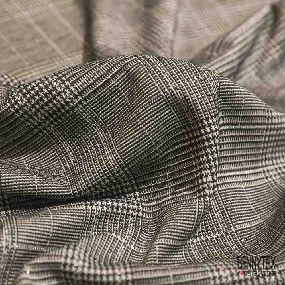 Jersey milano imprimé prince de Galle noir blanc lurex argent