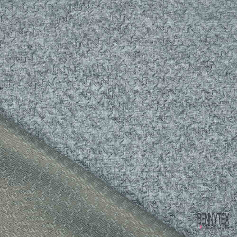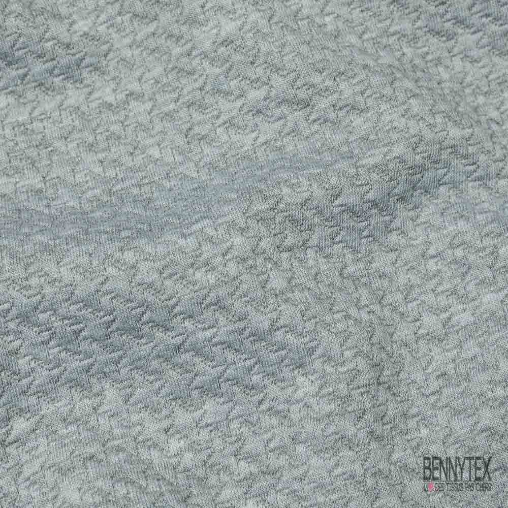 Maille gaufrée élasthanne motif pied de poule ton sur ton gris moyen