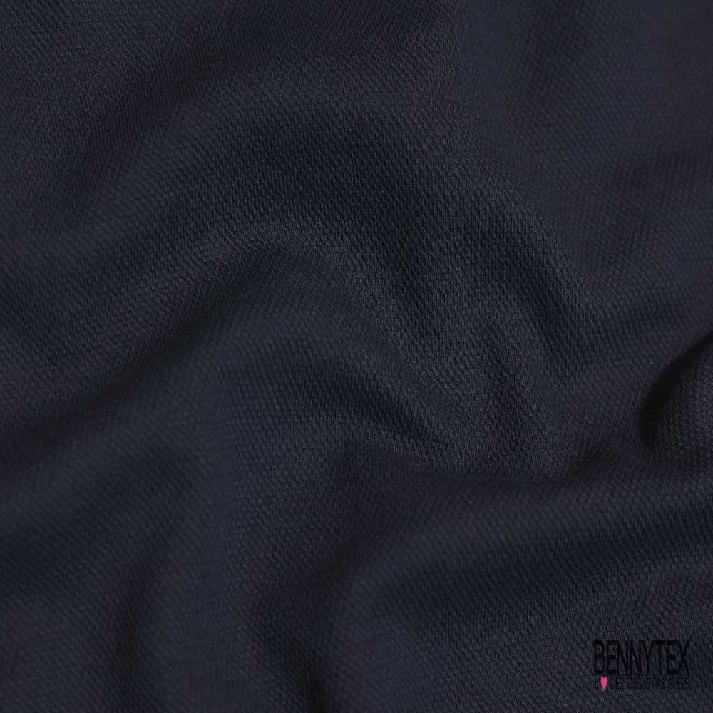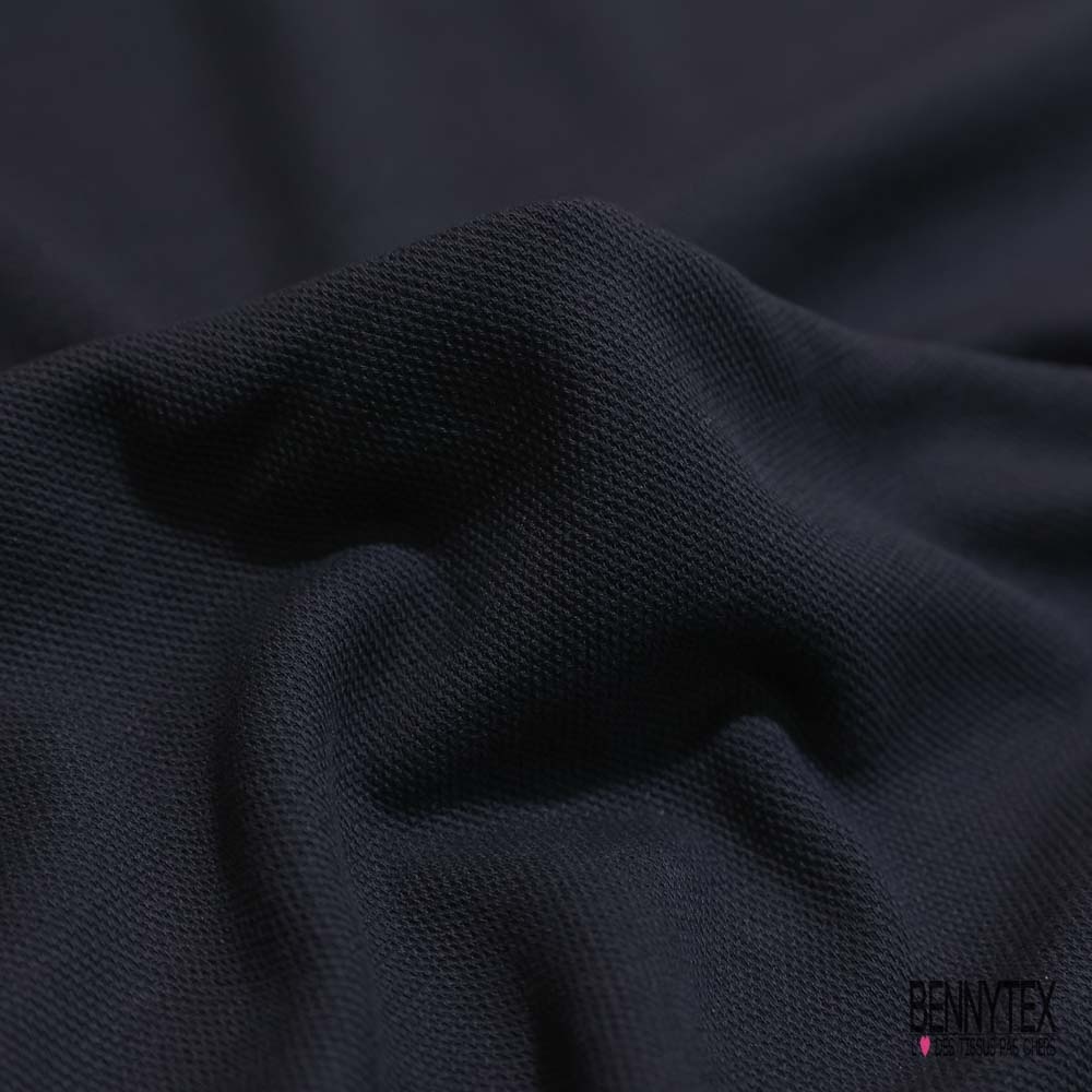 Le Jersey coton piqué lourd élasthanne uni marine est un tissu moelleux et souple idéal pour la confection de polo, T-Shirts, Vêtements de sport, Leggings, Jupes, Robes, Petits tops, leggings, bandeaux, marinières.