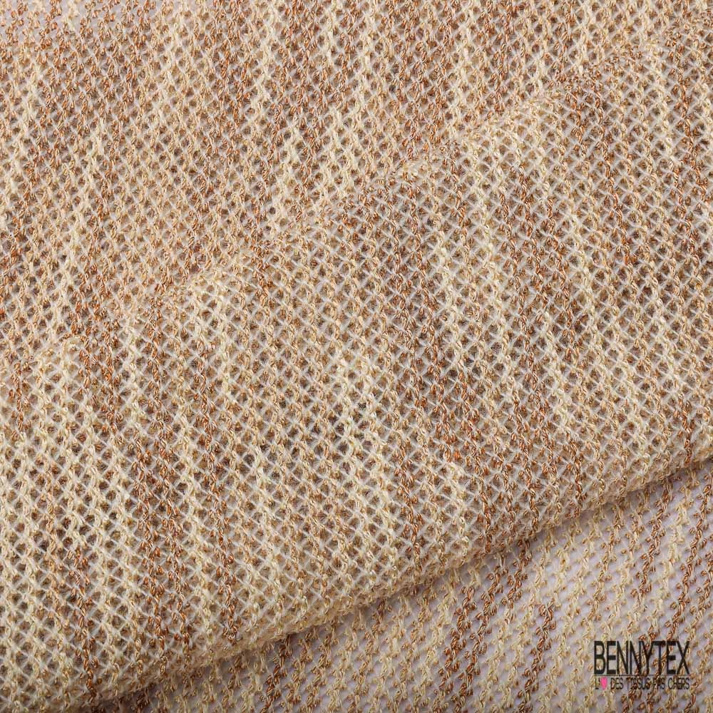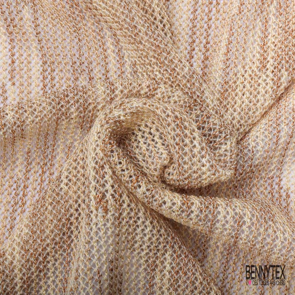Jersey tricot lache rayon coton chiné beige crème de banane