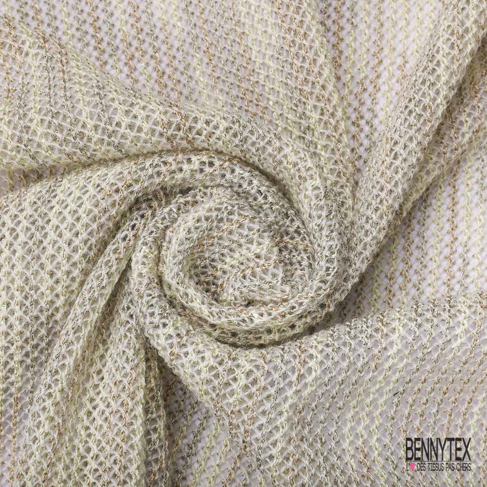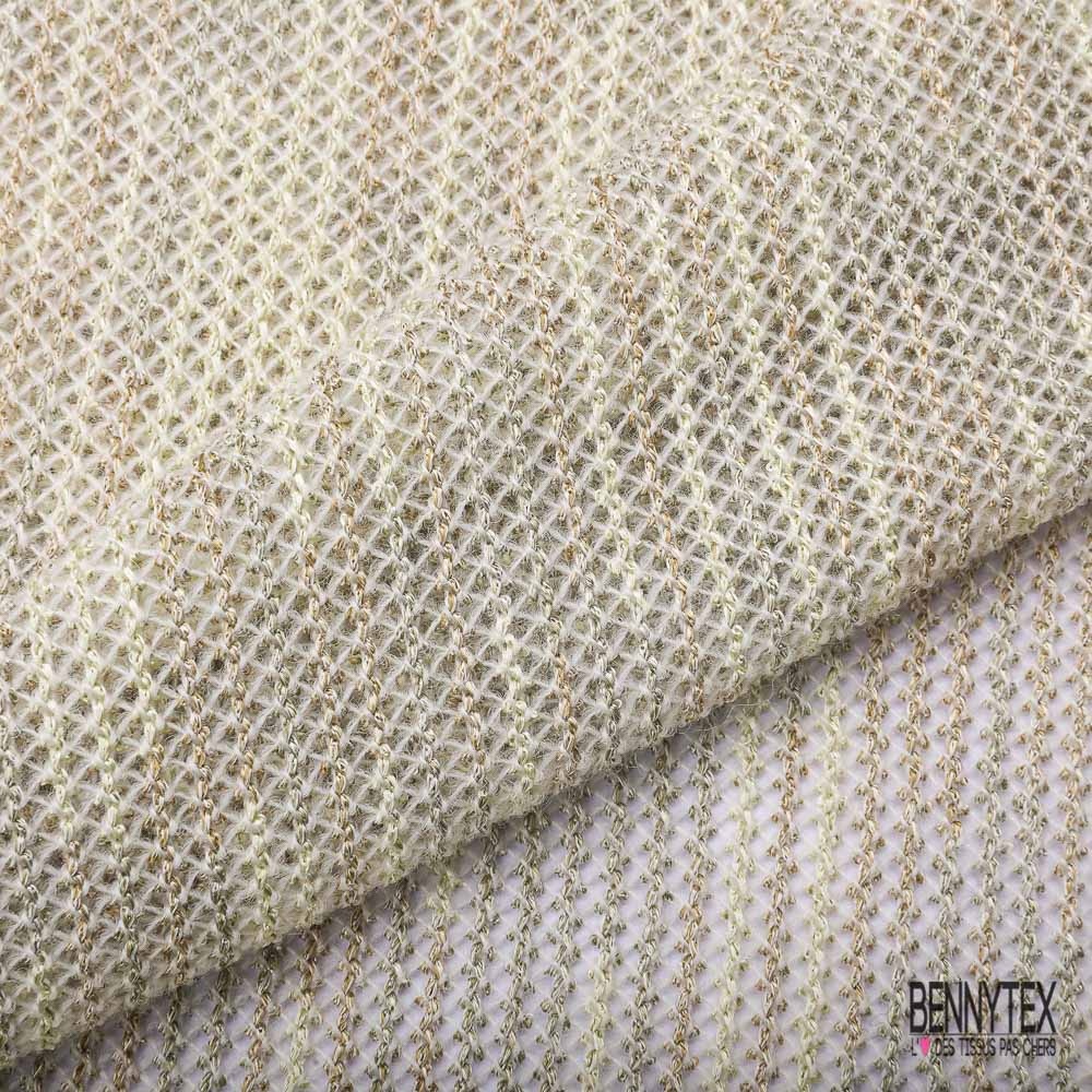 Jersey tricot lache rayon coton chiné beige crème verdâtre