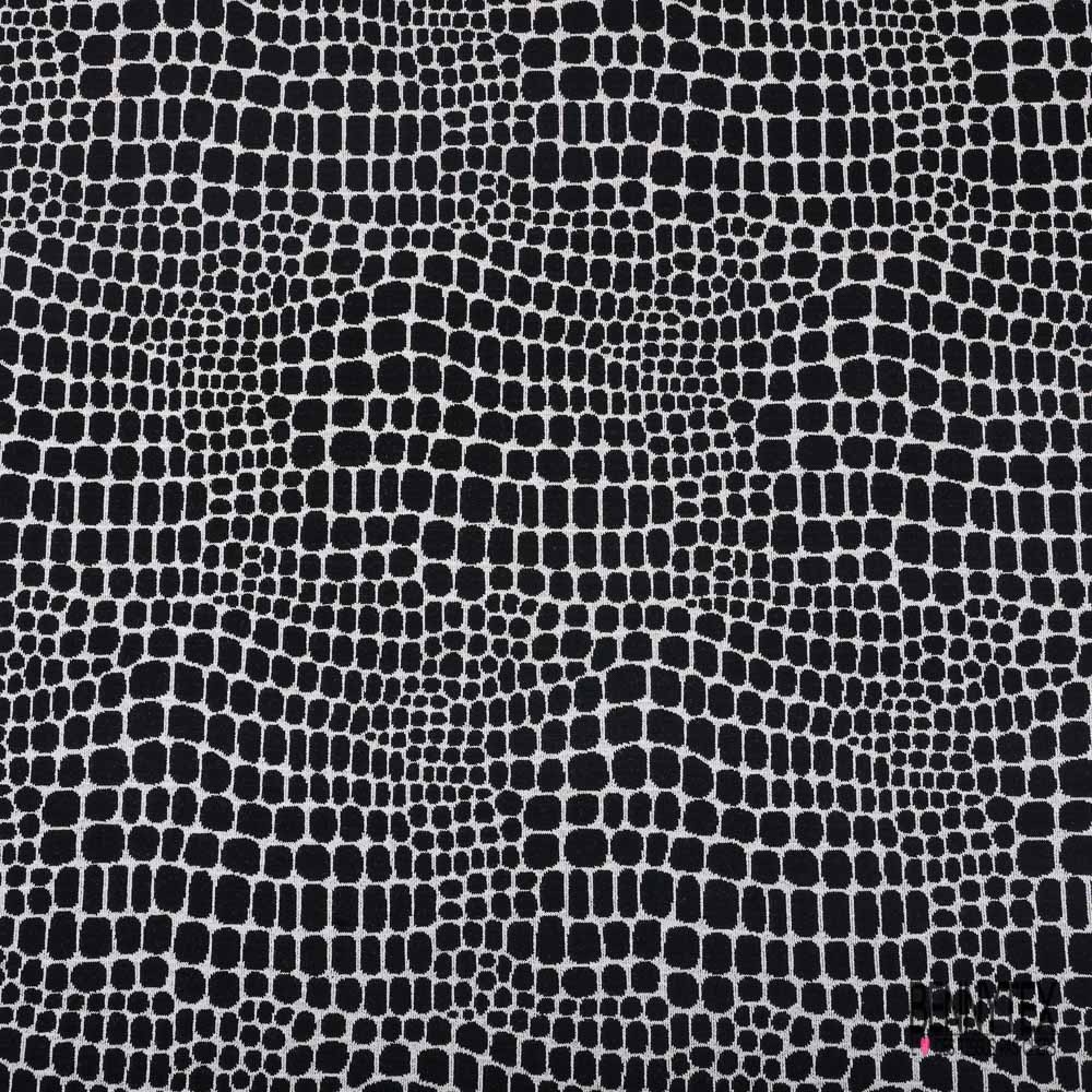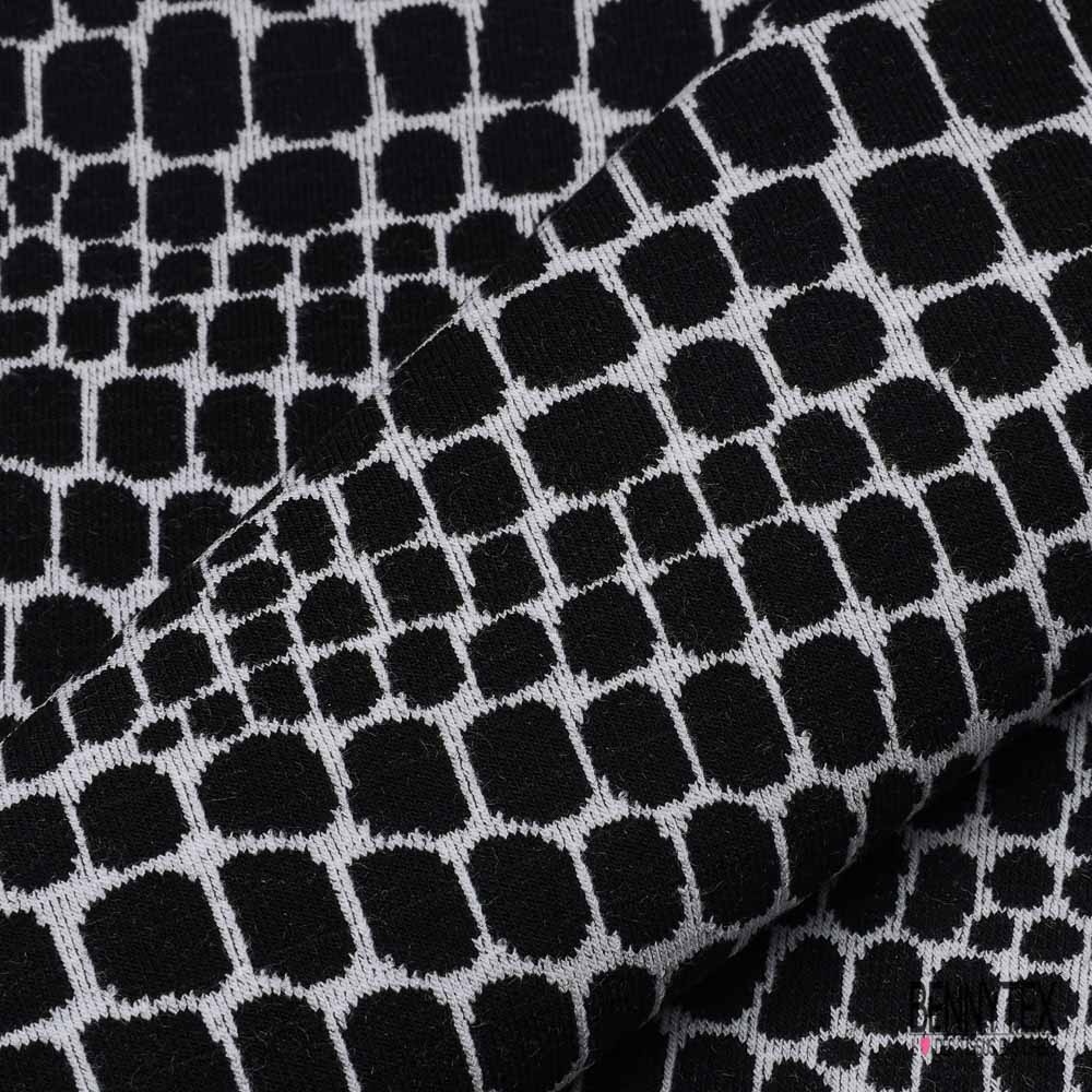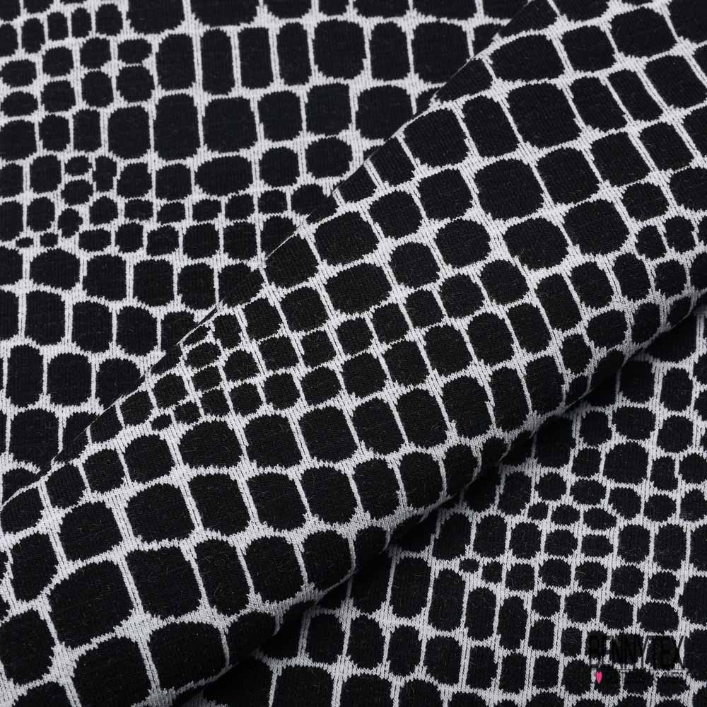 Maille polyester viscose motif abstrait noir fond blanc optique