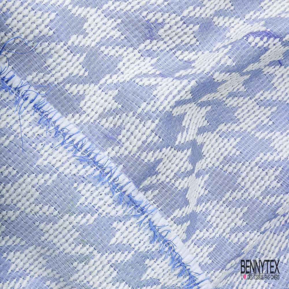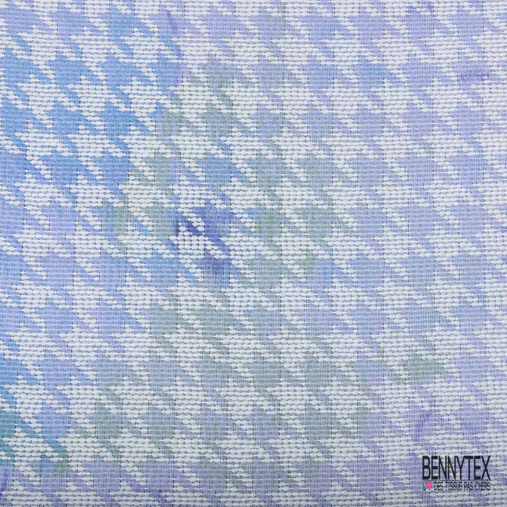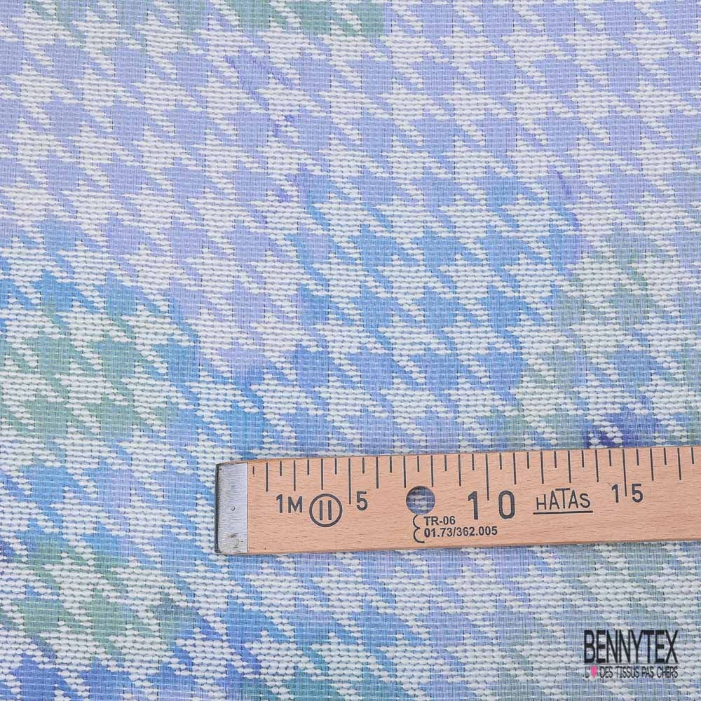 Coupon 3m Jacquard pied de coq bleu lavande anis blanc cassé
