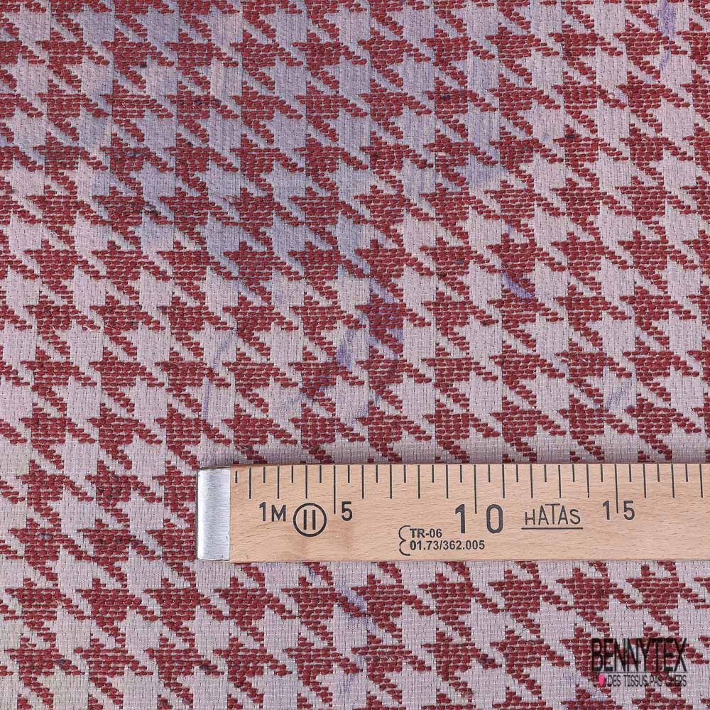 Coupon 3m Jacquard pied de coq lie de vin fin motif abstrait aquarelle