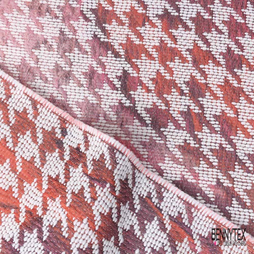 Coupon 3m Jacquard pied de coq orange marron fushia fin motif grande fleur