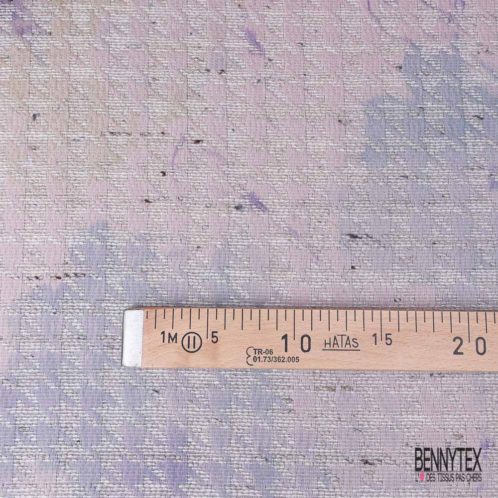 Coupon 3m Jacquard pied de coq ton pastel fin motif grande fleur