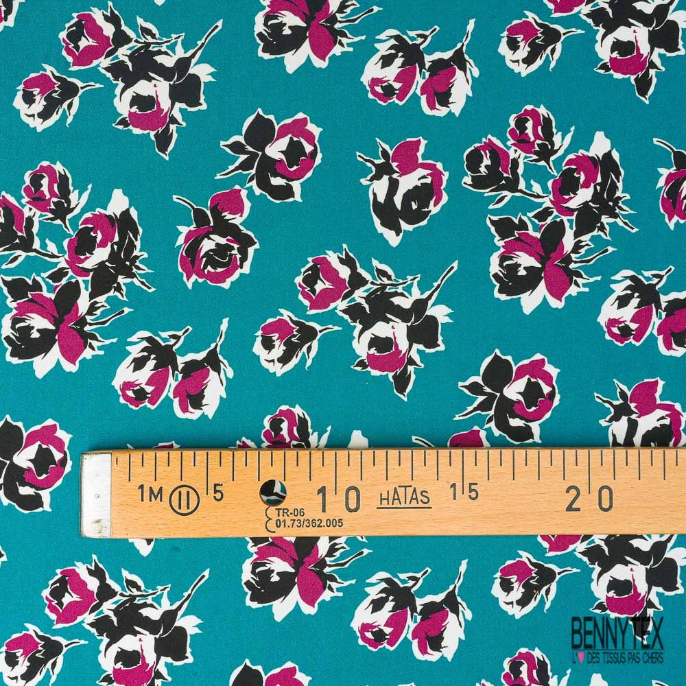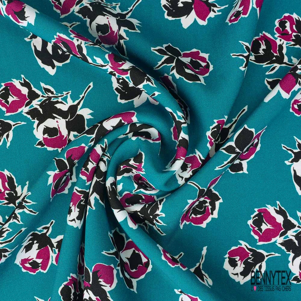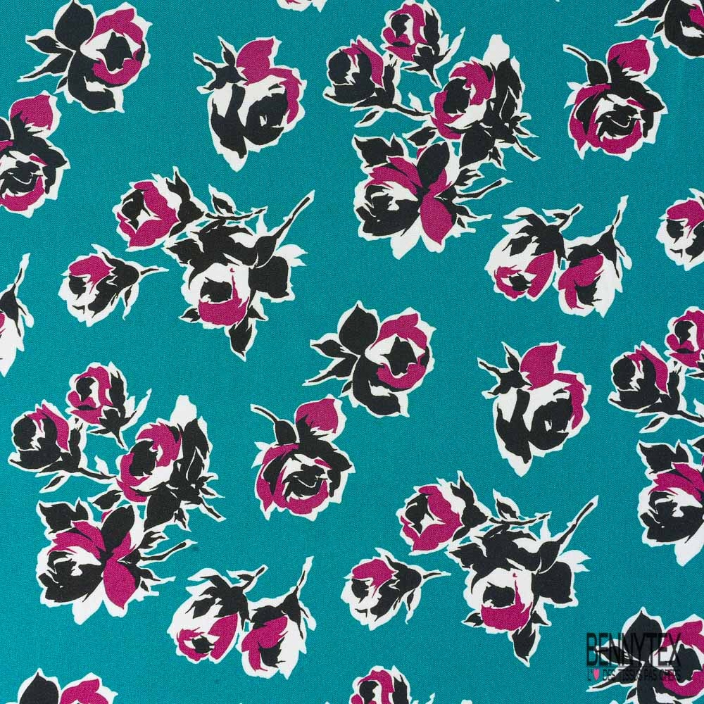 Fibranne viscose imprimé digital floral fond bleu de l'Orient