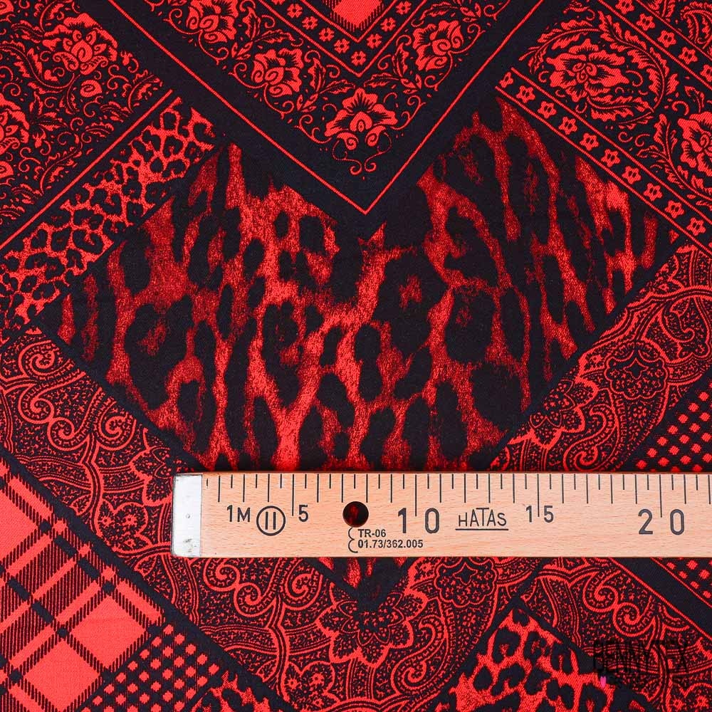 Twill viscose imprimé digital bandana cachemire noir rouge