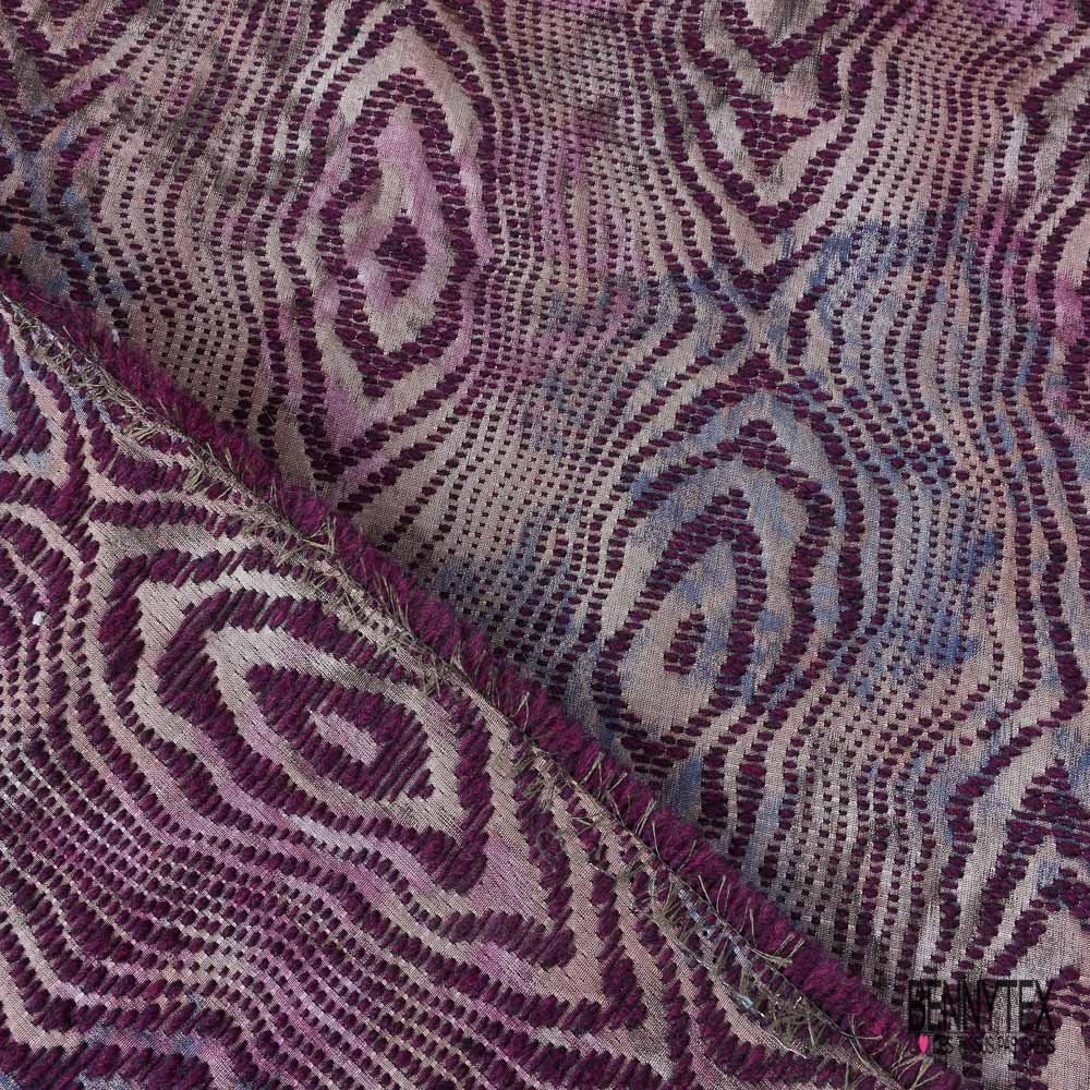 Coupon 3m Jacquard rainure de bois ton bordeaux fin motif floral vintage