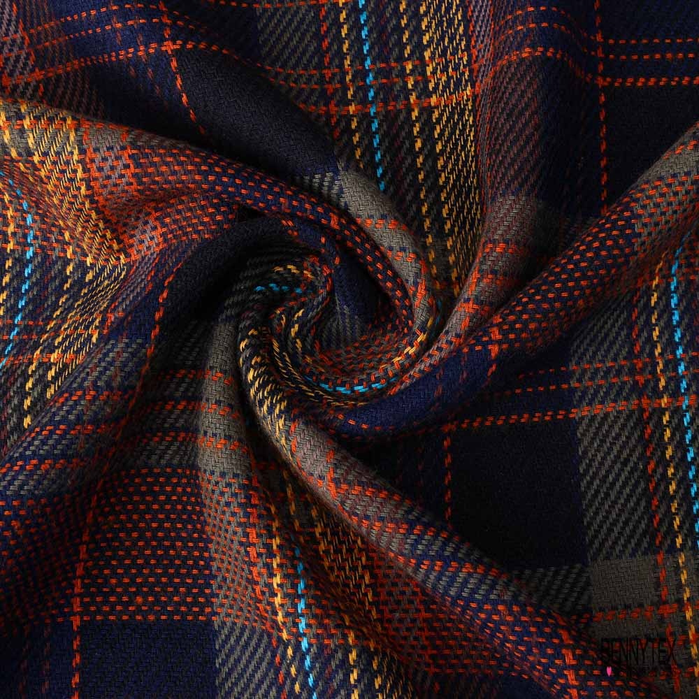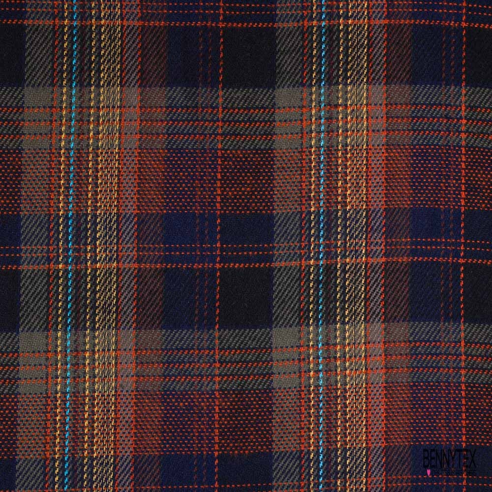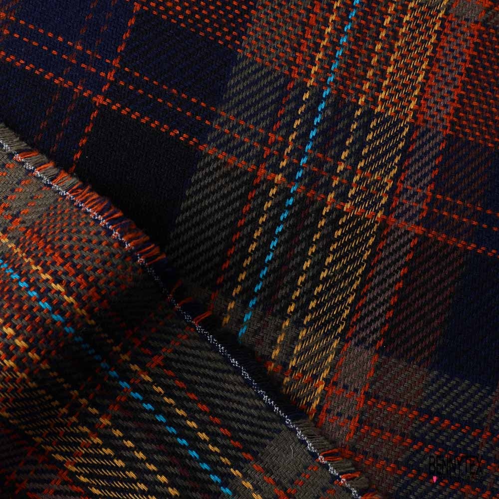 Coton natté fin fluide souple motif tartan kaki bleu nuit orange turquoise jaune or