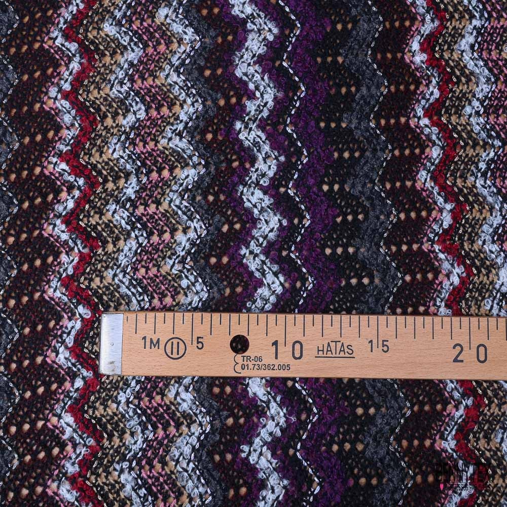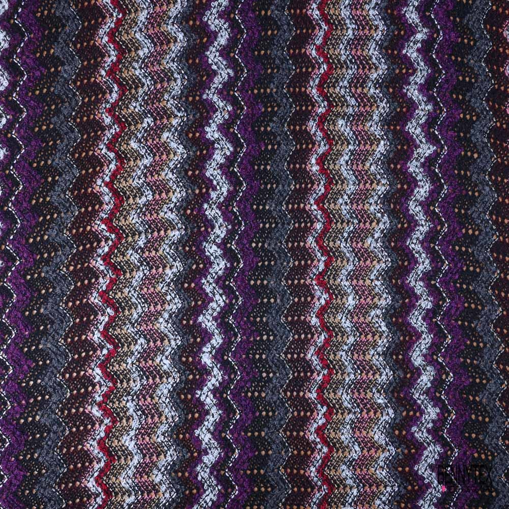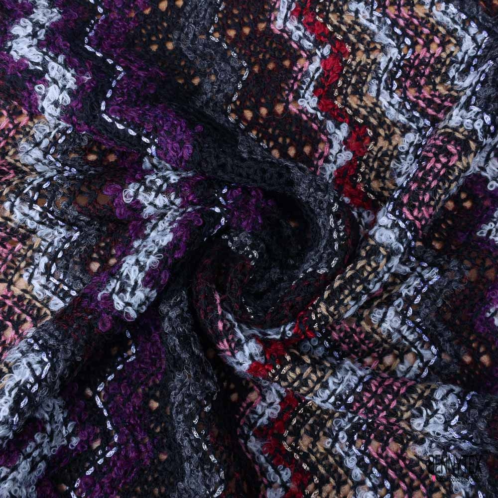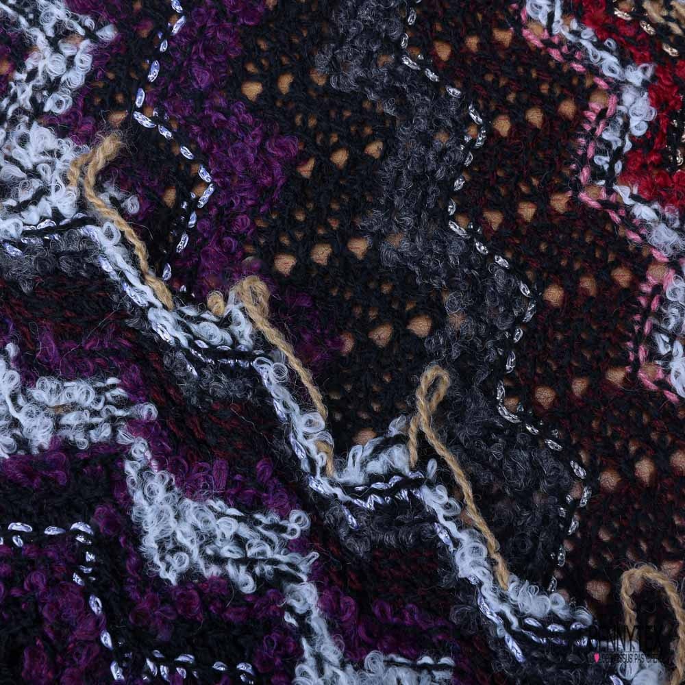 Tricot lâche sinusoïde prune noir beige blanc lurex argent