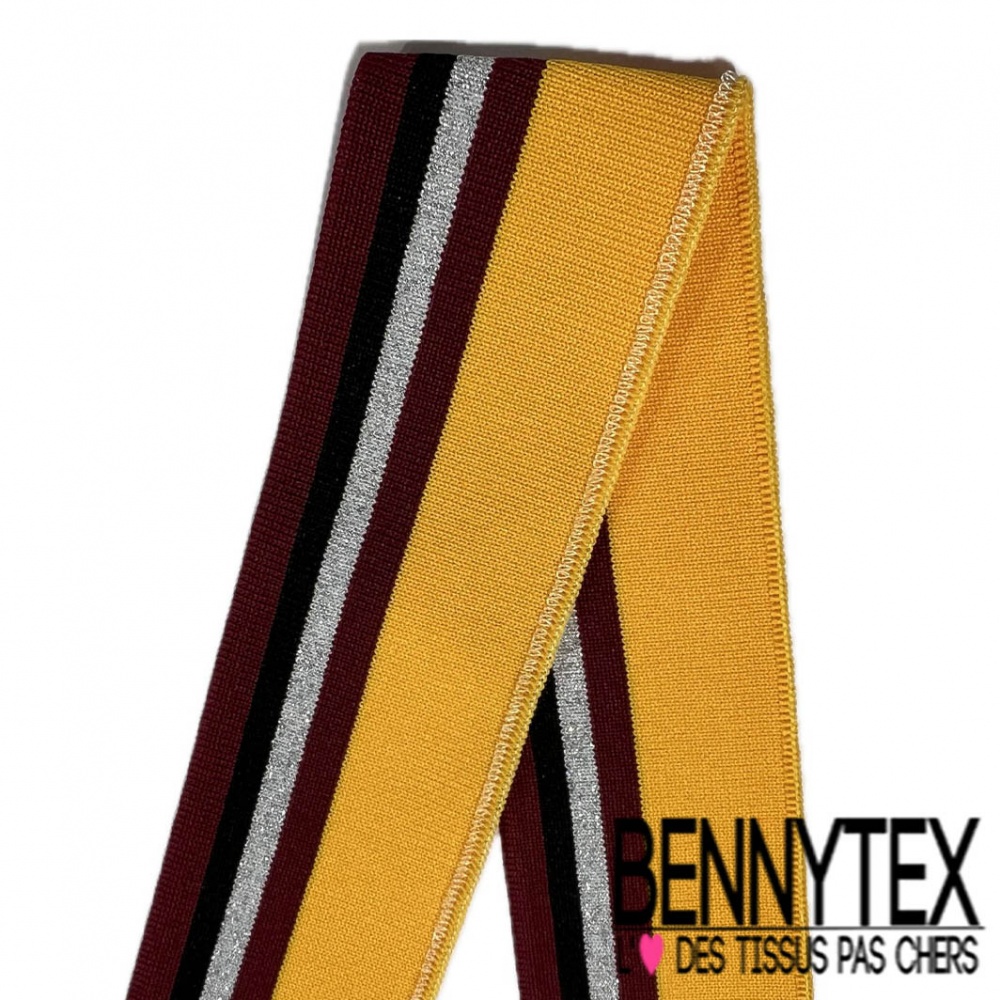 Bande bord cote bande noir bordeaux lurex argent fond jaune or