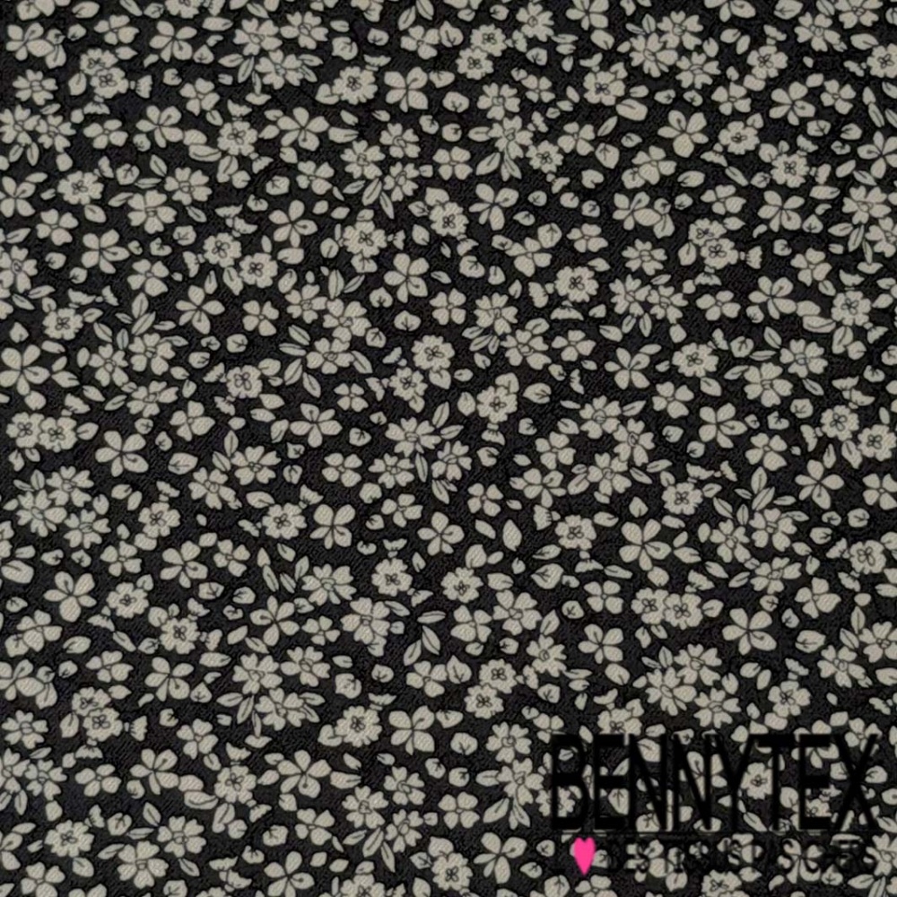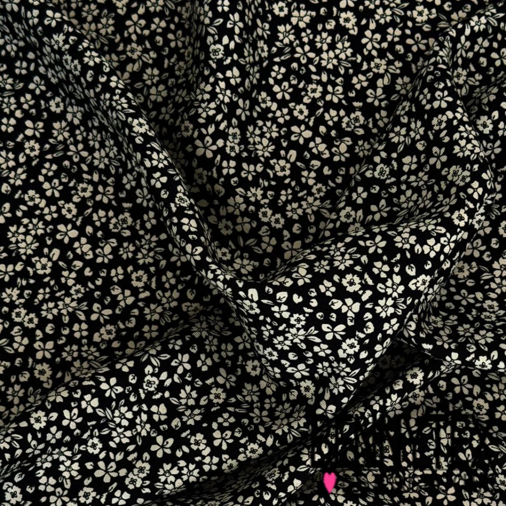 Fibranne viscose pachmina imprimé digital mini fleur champêtre blanc cassé fond noir