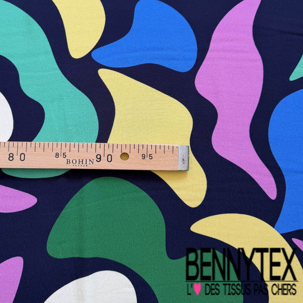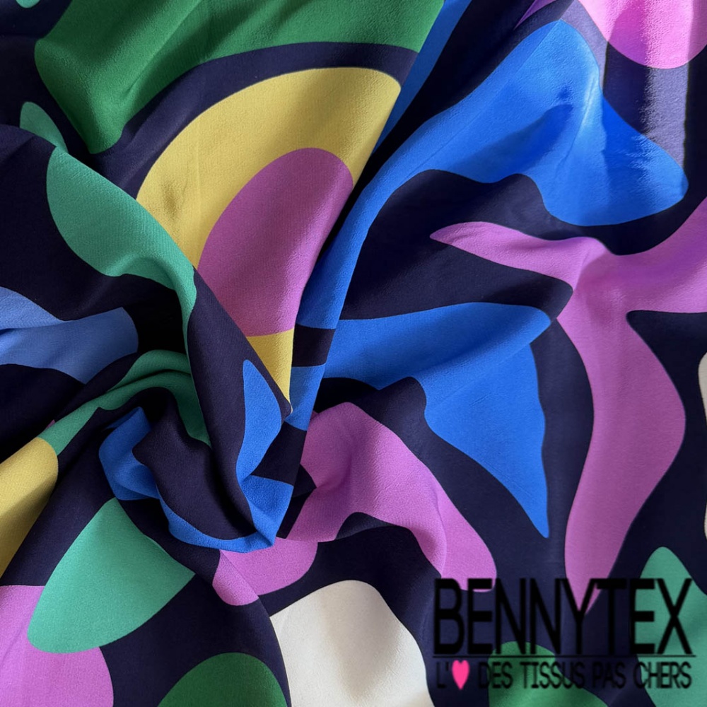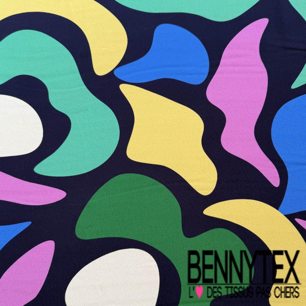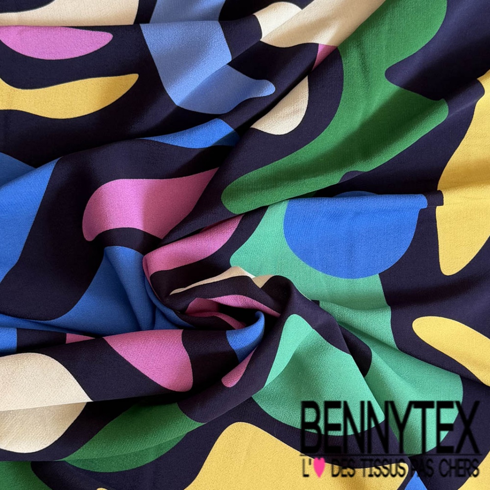 Crêpe viscose motif abstrait multicolore fond bleu nuit