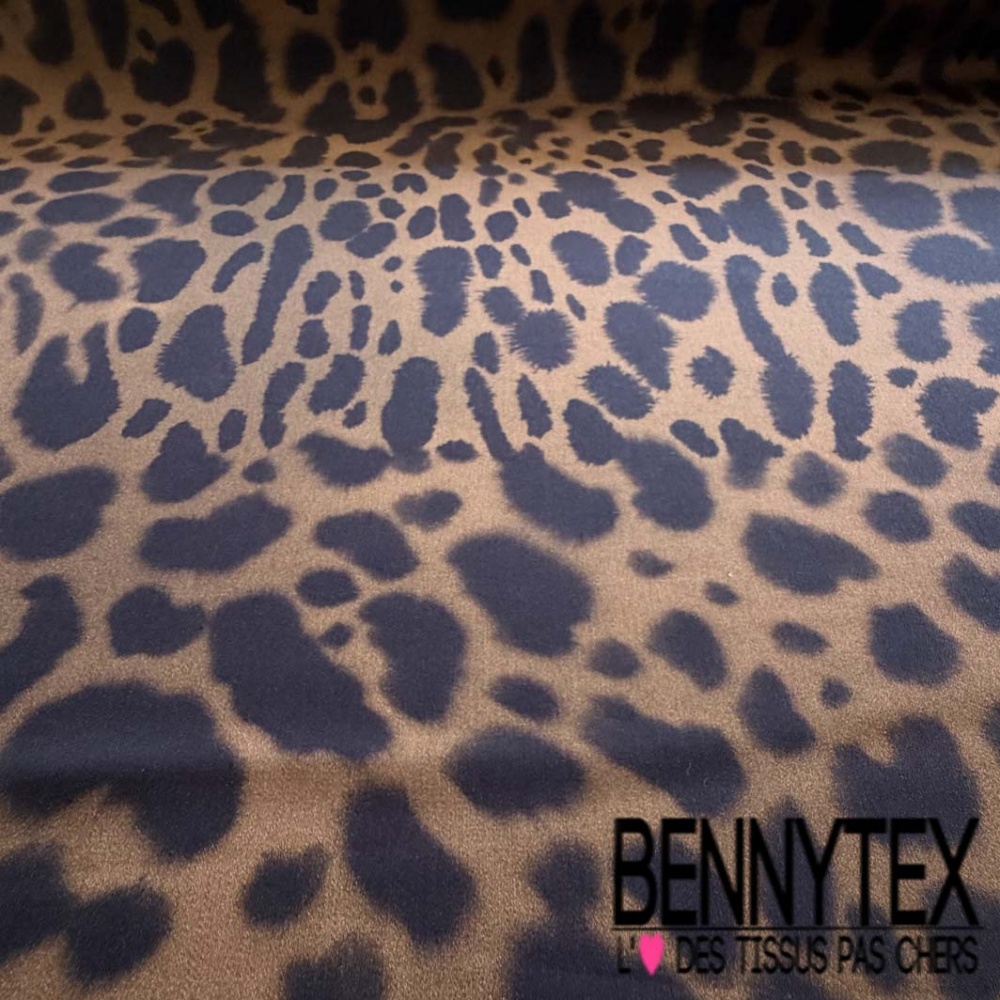 Fibranne viscose imprimé léopard stylisé noir fond tabac