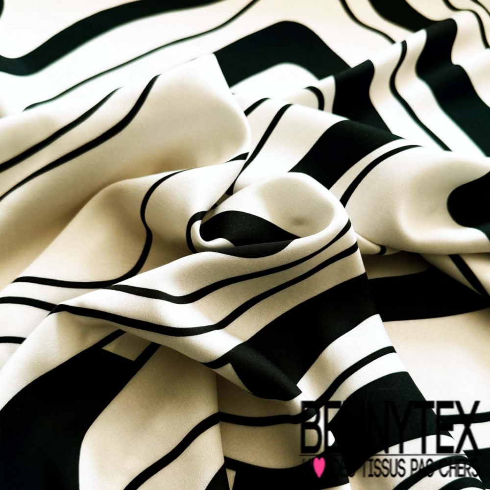 Fibranne viscose imprimé sinusoïde noir fond écru