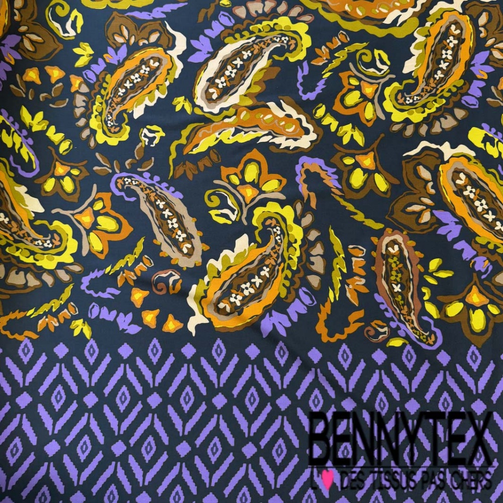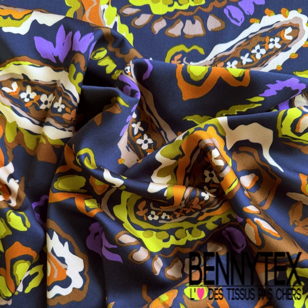 Fibranne viscose simple base grand imprimé cachemire fond bleu nuit