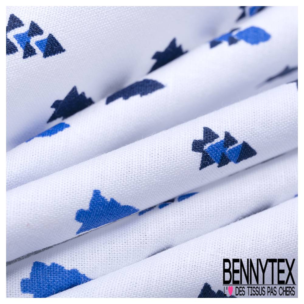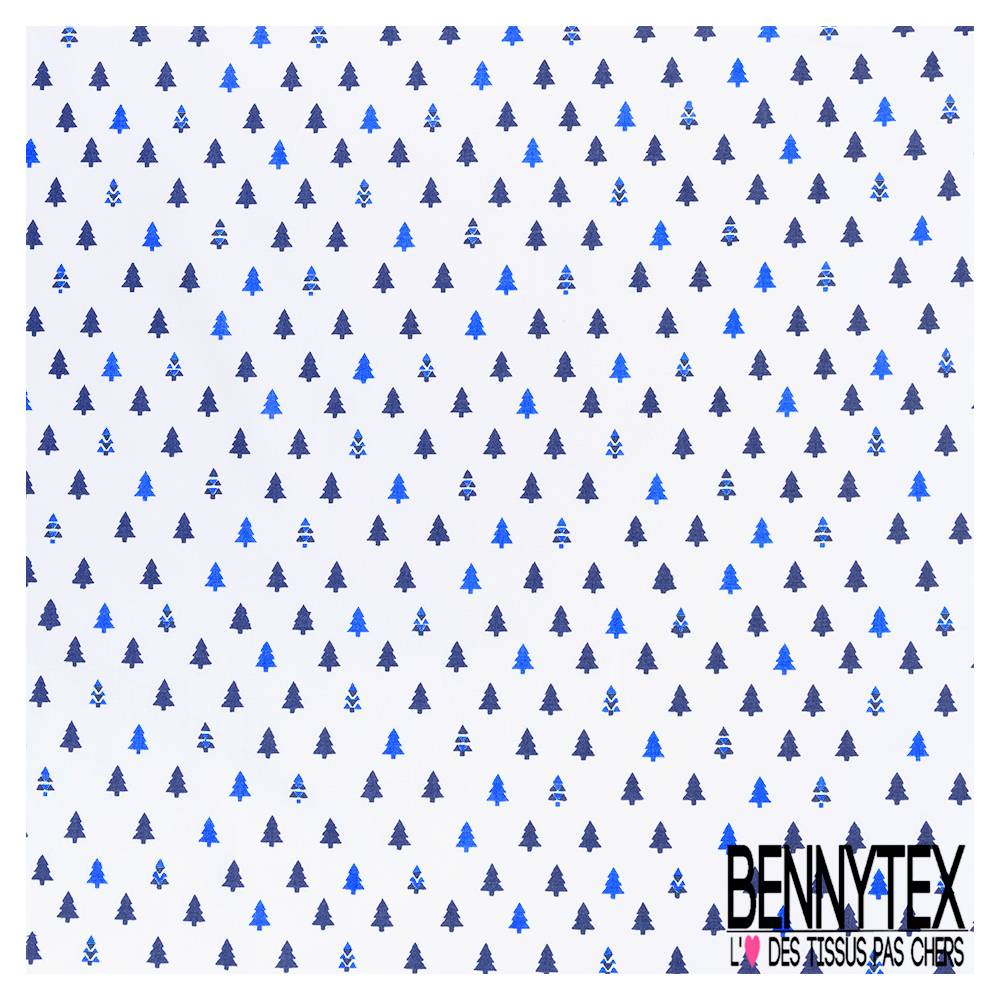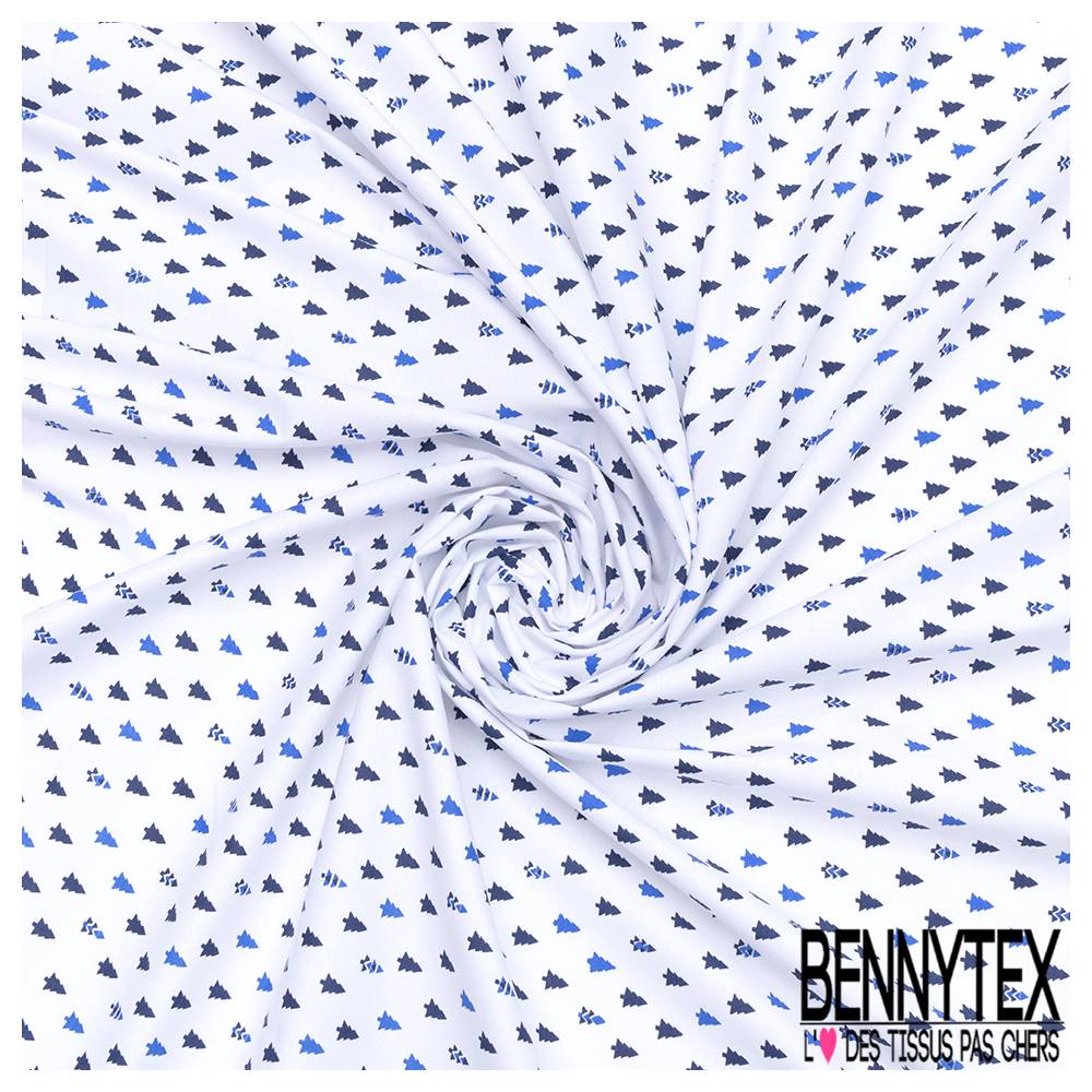 Coton Imprimé Petit Sapin de Noël Bleu Roi Marine fond Blanc