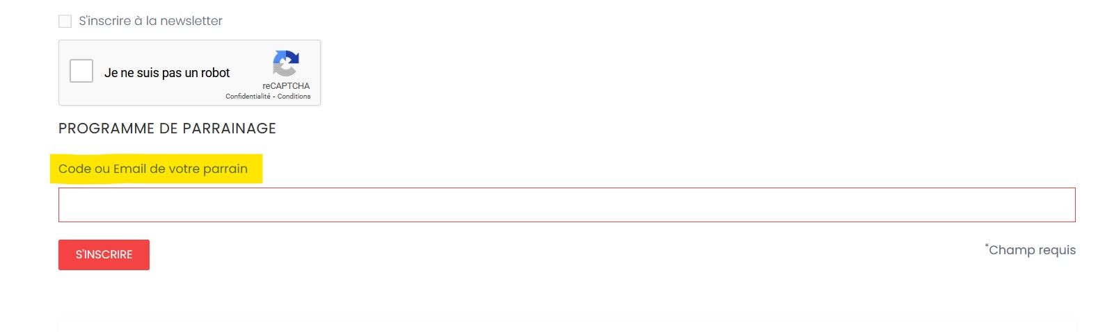 Si vous êtes déjà client de Bennytex.fr, vous ne pouvez pas être parrainé.